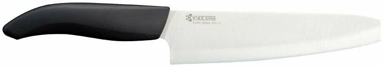 This ceramic Chef’s knife will give you precision slicing and straight cutting with a precision control handle design. The Kyocera ceramic knife blade uses Zirconia 206 proprietary advanced ceramic which possesses superior edge retention. Kyocera ceramic knives will keep there edge 10 times longer then high carbon steel blades and Kyocera’s advanced ceramic will even last longer then most other ceramic cutlery. Unlike many other ceramic cutlery Kyocera offers a lifetime warranty and lifetime sharpening service.