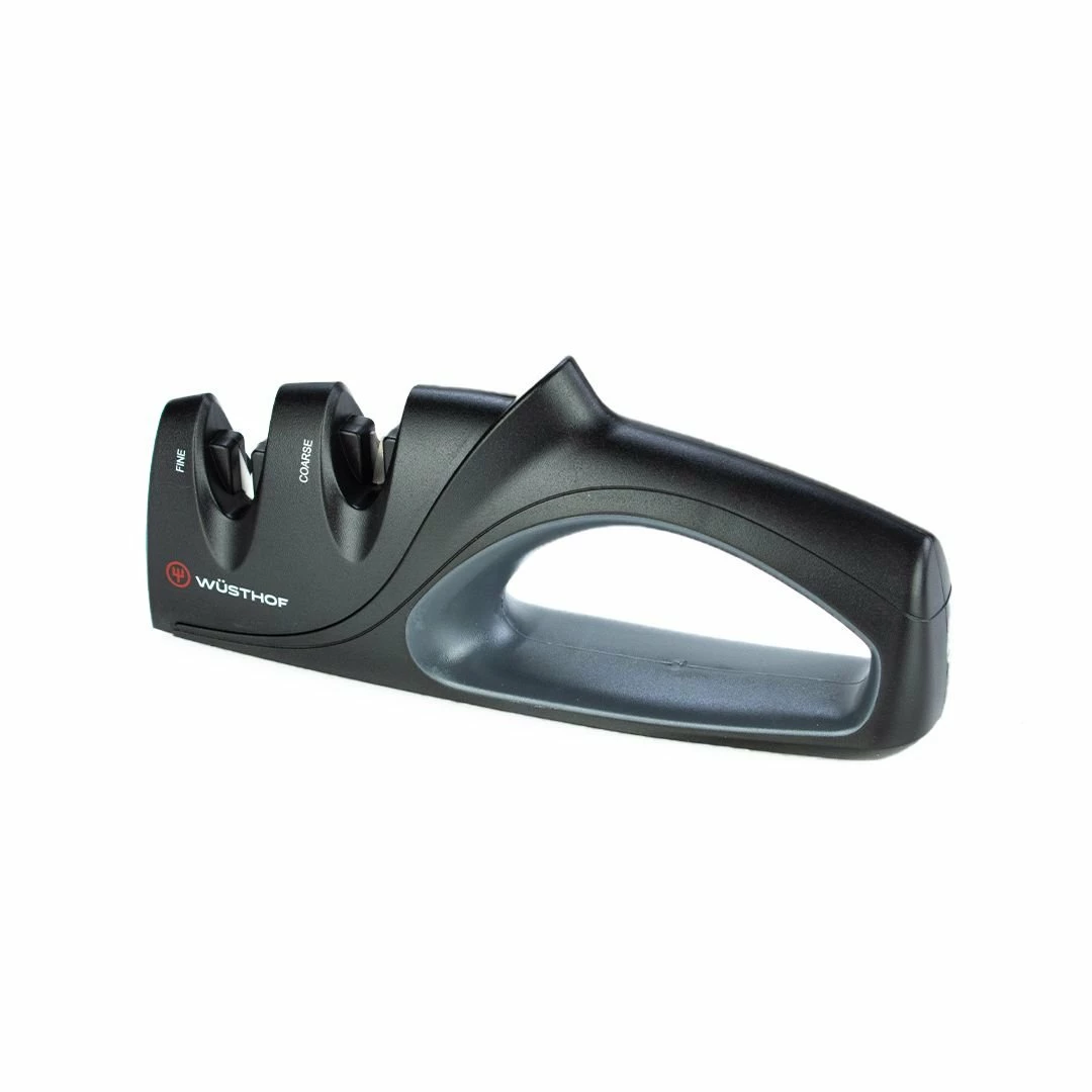 Wusthof knife sharpeners are a must have with your Wusthof knife set. This 2-Stage Knife Sharpener is easy to use and can create a razor sharp edge with just a few easy swipes through the ceramic sharpener. This sharpener is capable of handling serrated and scalloped edges as well as your regular straight edge knife. The easy grip handle is extra durable and can makes all your knife sharpening and easy and safe.