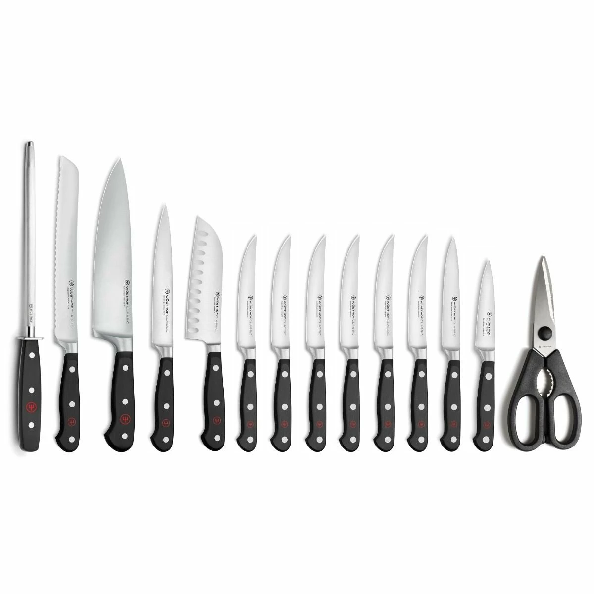 Upgrade your kitchen’s cutting power and versatility today with the Classic 15-Piece Knife Block Set from Wusthof!
