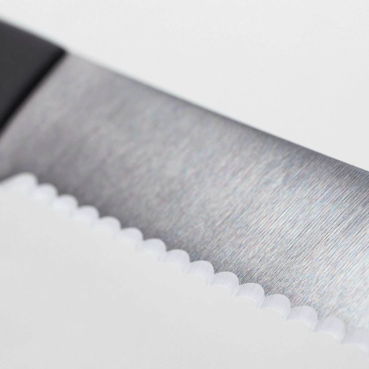 - Serrated edge blade has small, saw-like teeth to slice cleanly through food with delicate textures without damaging soft insides