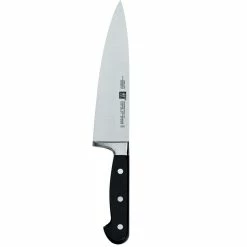 This knife has a cutting edge that runs the length of the blade with a comfortable ergonomic curved bolster for firm gripping. Chop, slice, dice, and mince with precision using the Zwilling Pro 8-inch Chefs Knife. Made from one single piece of steel, this modern knife features a dual sided 15° angle with -57 Rockwell Hardness. A full tang bolster is held between 3 rivets and will ensure a firm grip reducing fatigue when preparing large or small quantities of food. Whether new to the world of premium cutlery, or expanding your kitchen, the Zwilling Pro 8-inch Chefs Knife is an excellent jumping off point!